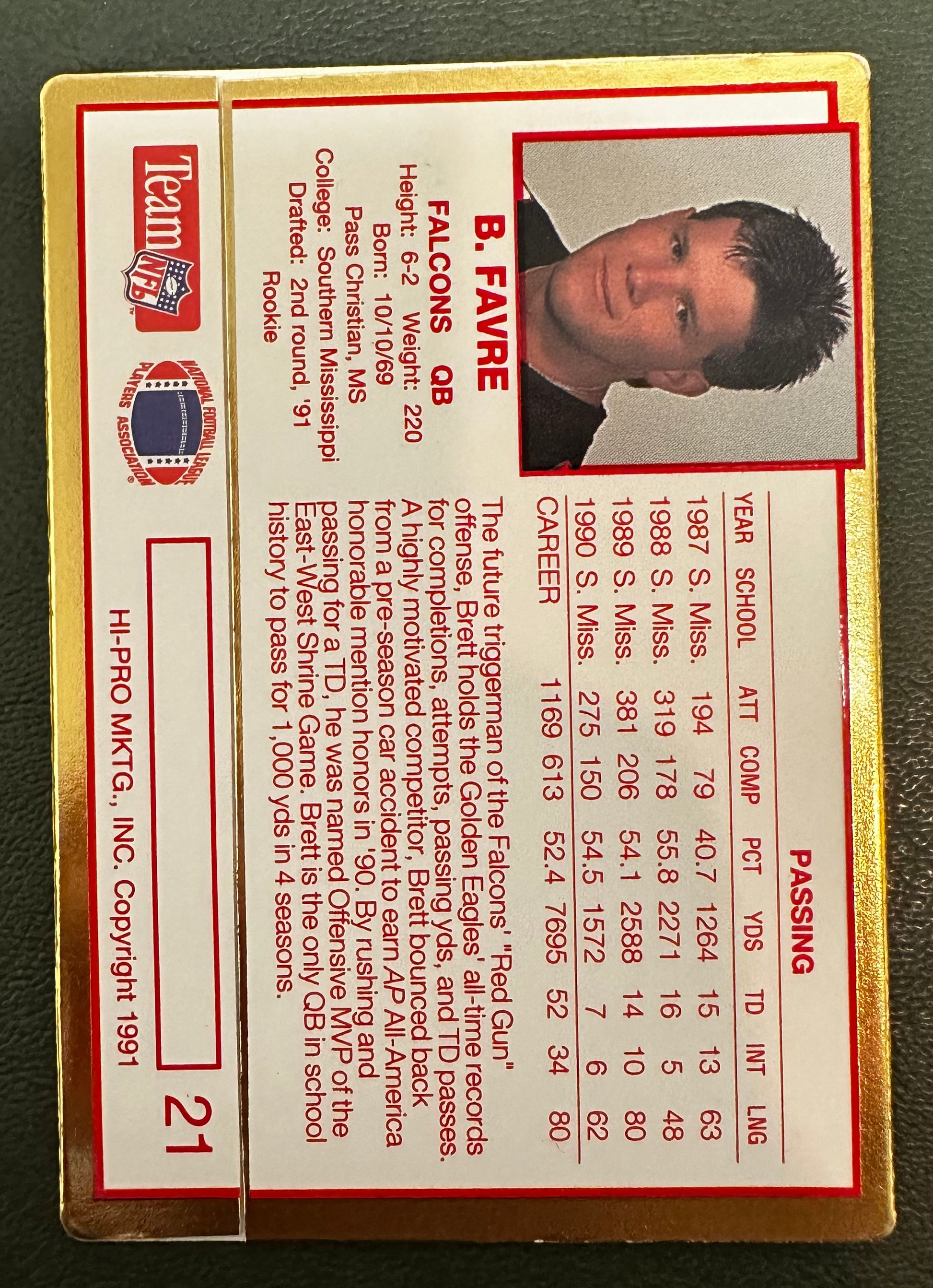 Brett Favre 1991 Action Packed rookie card #21